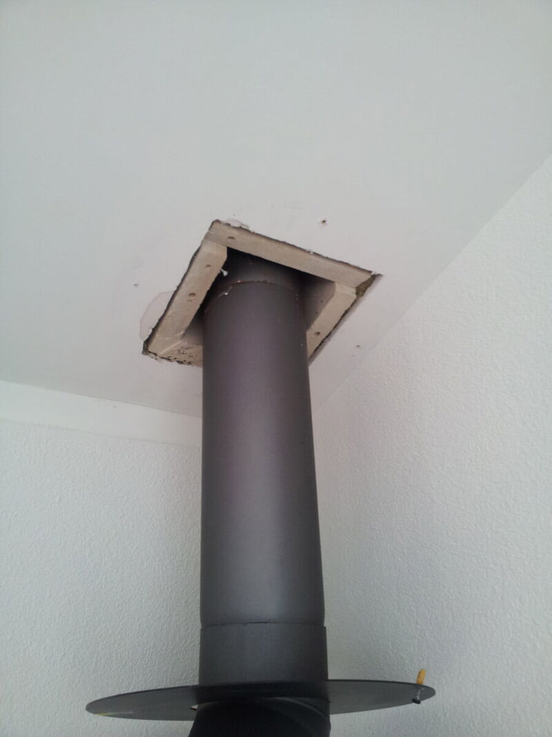 Rauchrohr wurde bis übers Dach gezogen, anstelle von einem geprüften Kamin