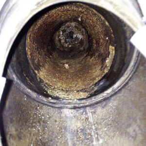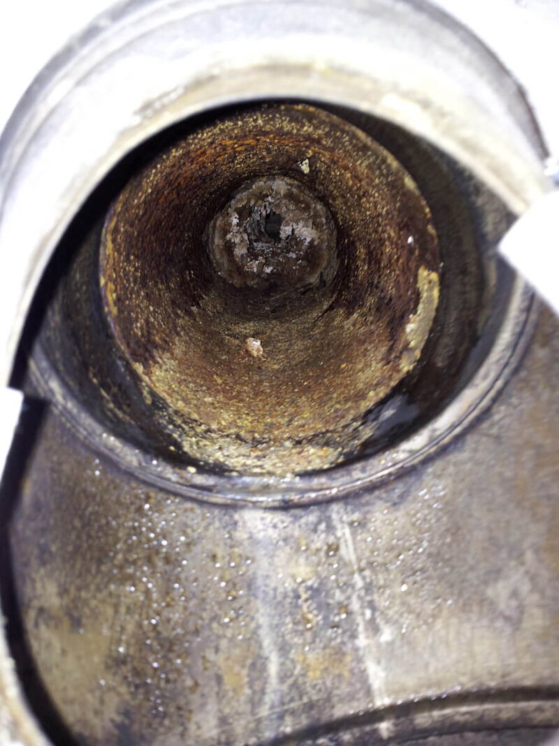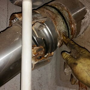 Verrostete Rauchrohrverbindung mit Verstopfung