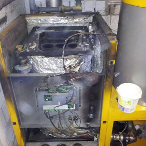 Defekte Kesselfronttüre, muss ersetzt werden