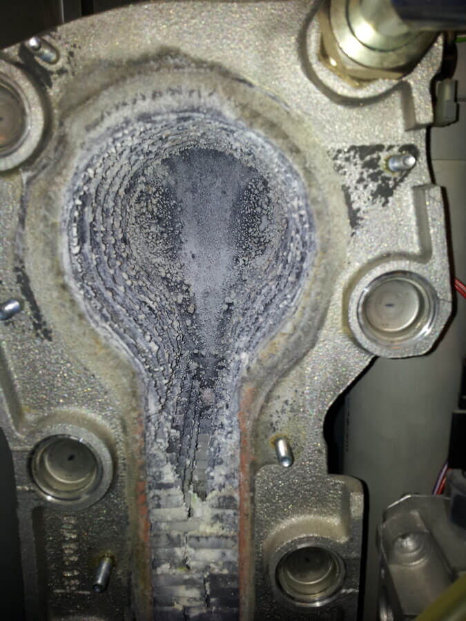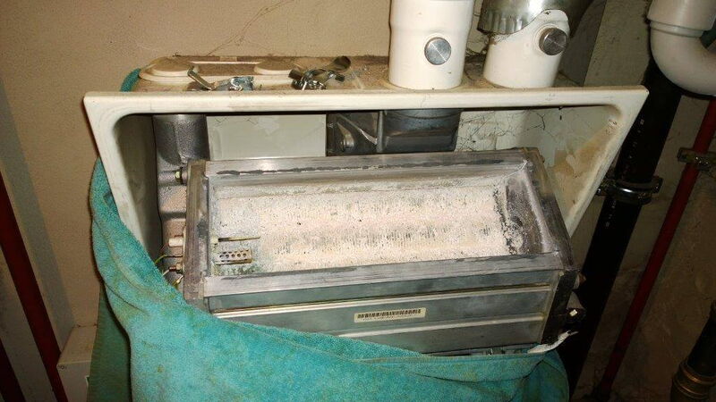 Verschmutze Gas-Wandtherme, nach 2 Jahren Betrieb ohne Service