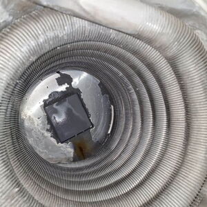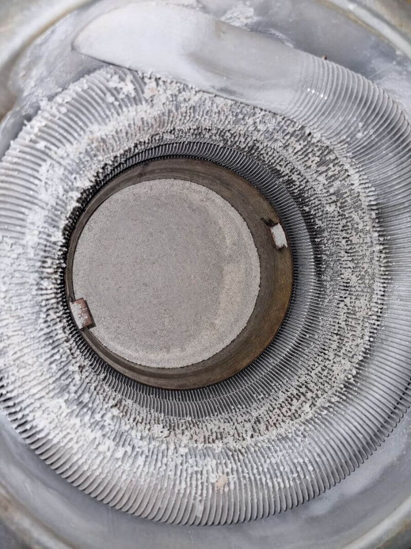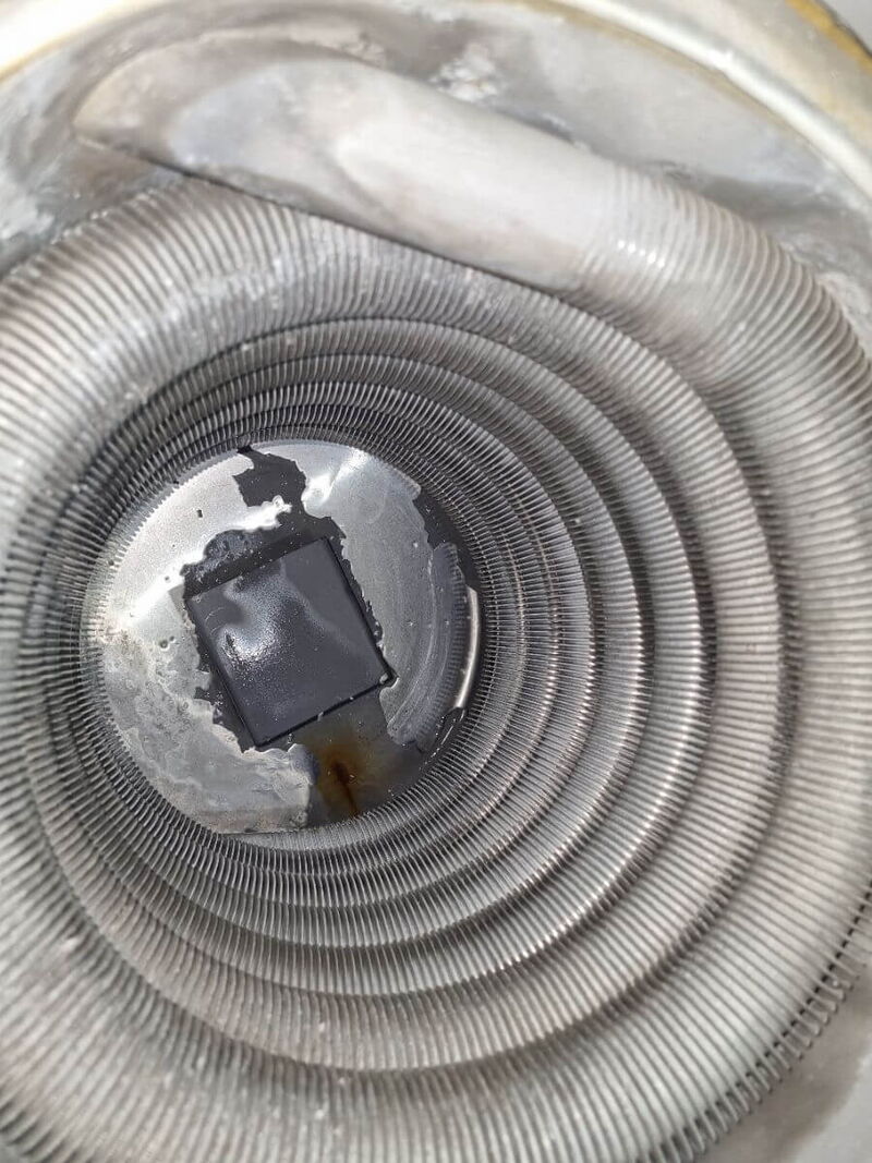 Verschmutzte Nachschaltheizflächen einer Gas-Heizung. 1 Jahr in Betrieb