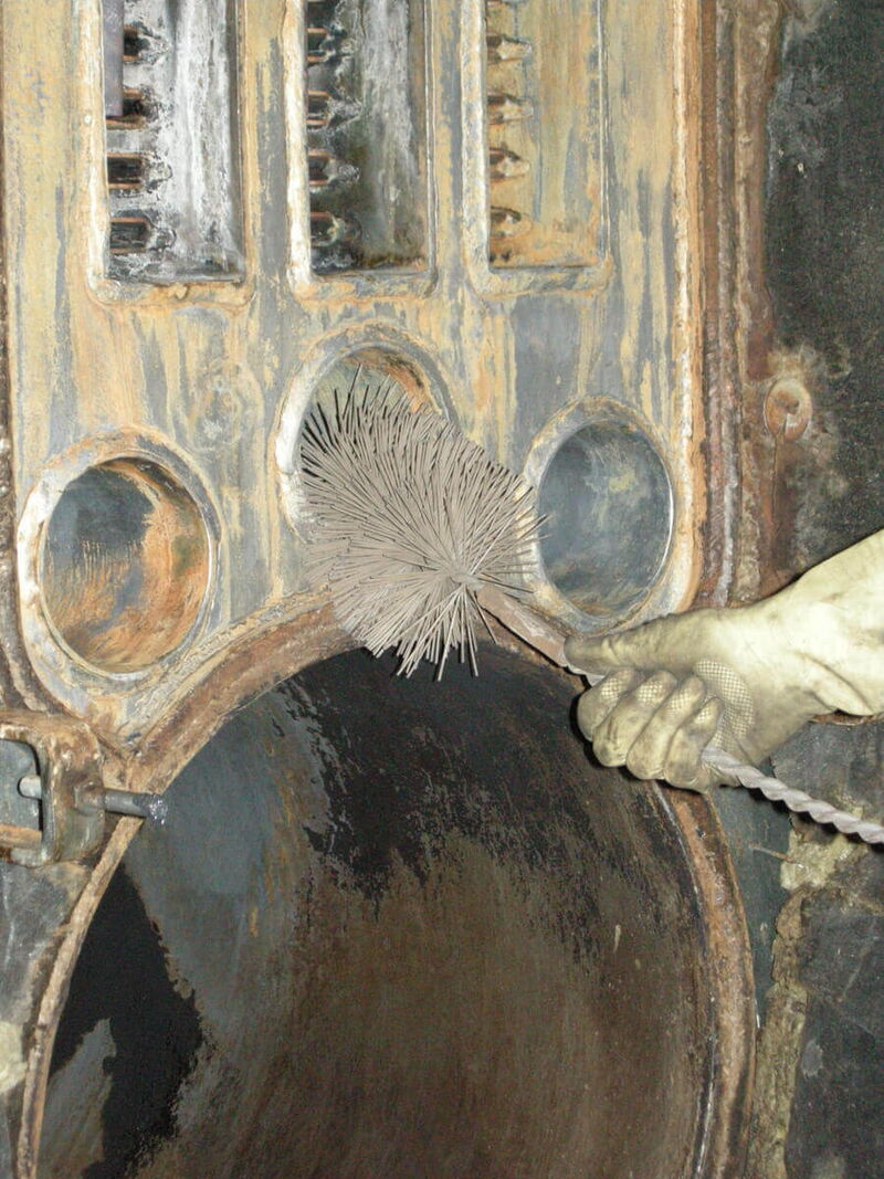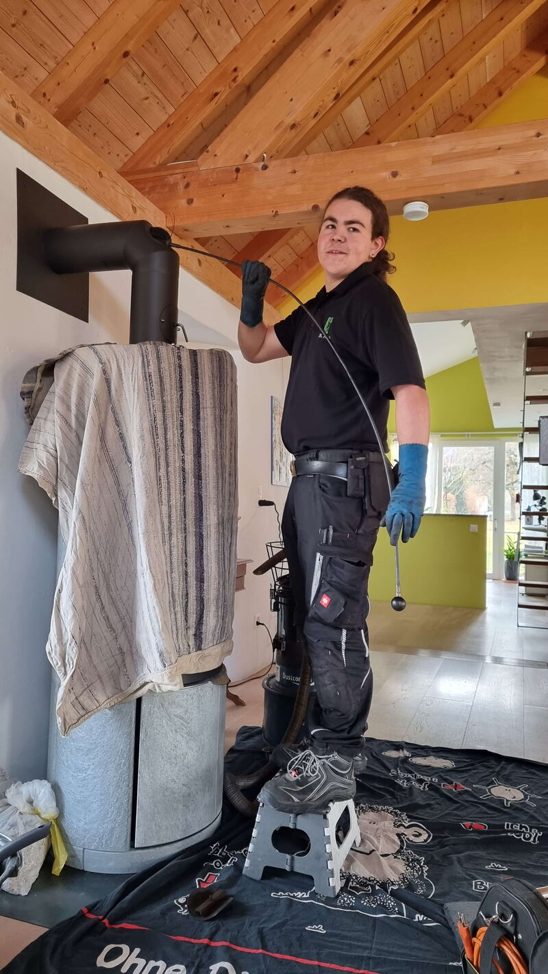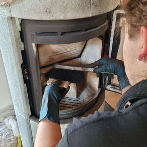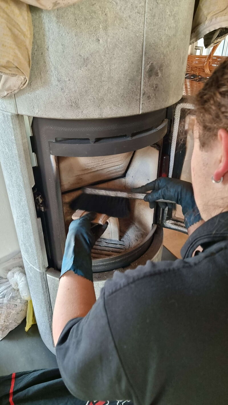 Reinigung einer Rauchrohrverbindung an einem Specksteinofen