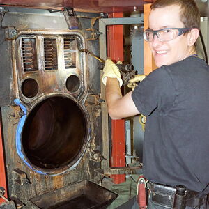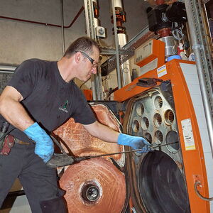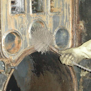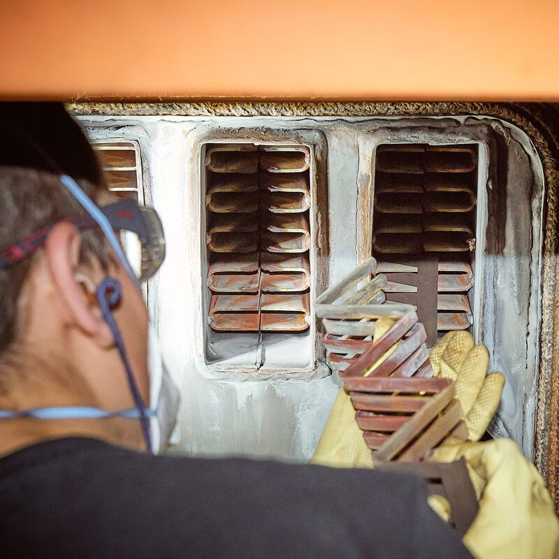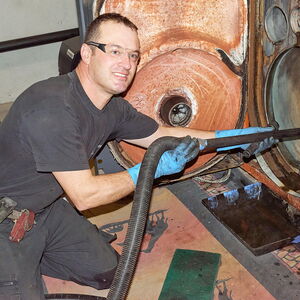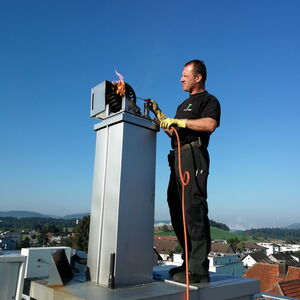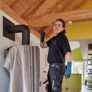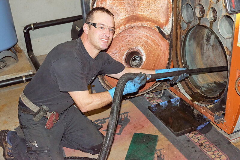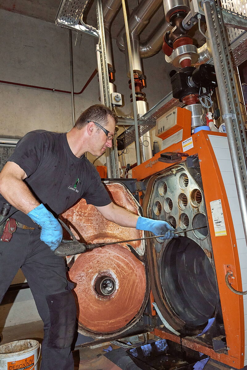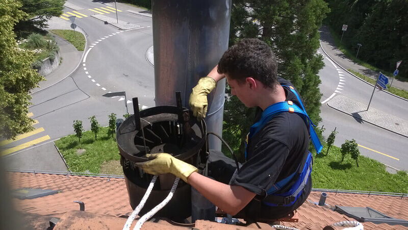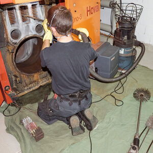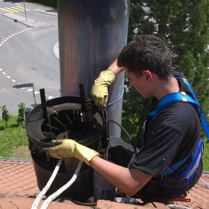 Reinigung einer Rauchrohrverbindung an einem Specksteinofen