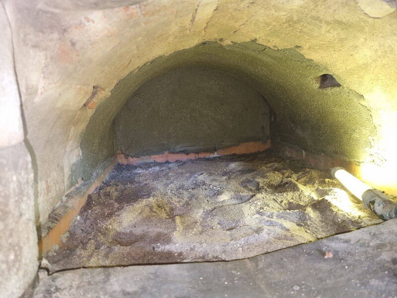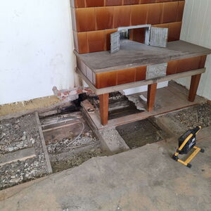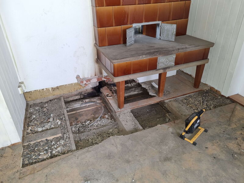 Kachelofen neu ausgestrichen und neue Bodenplatten verlegt