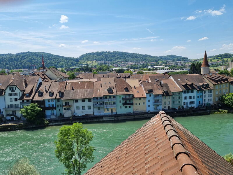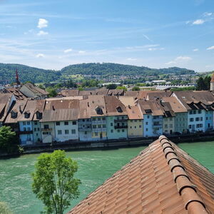 Arbeitsplatz mit Aussicht auf die Stadt Mellingen